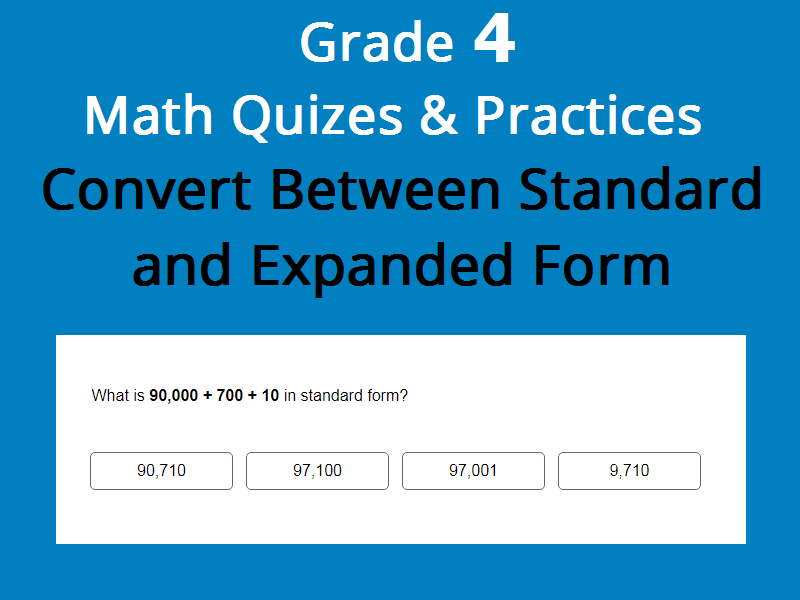 Quiz 4st Class students to convert a mix of 4-digit, 5-digit and 6-digit numbers from standard form to expanded form and vice versa.